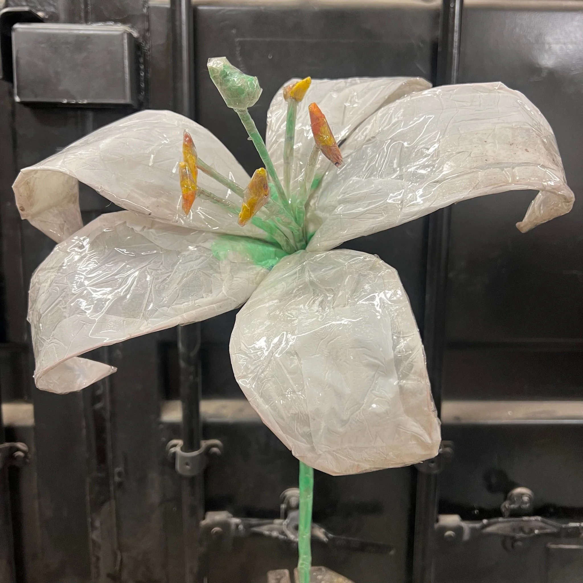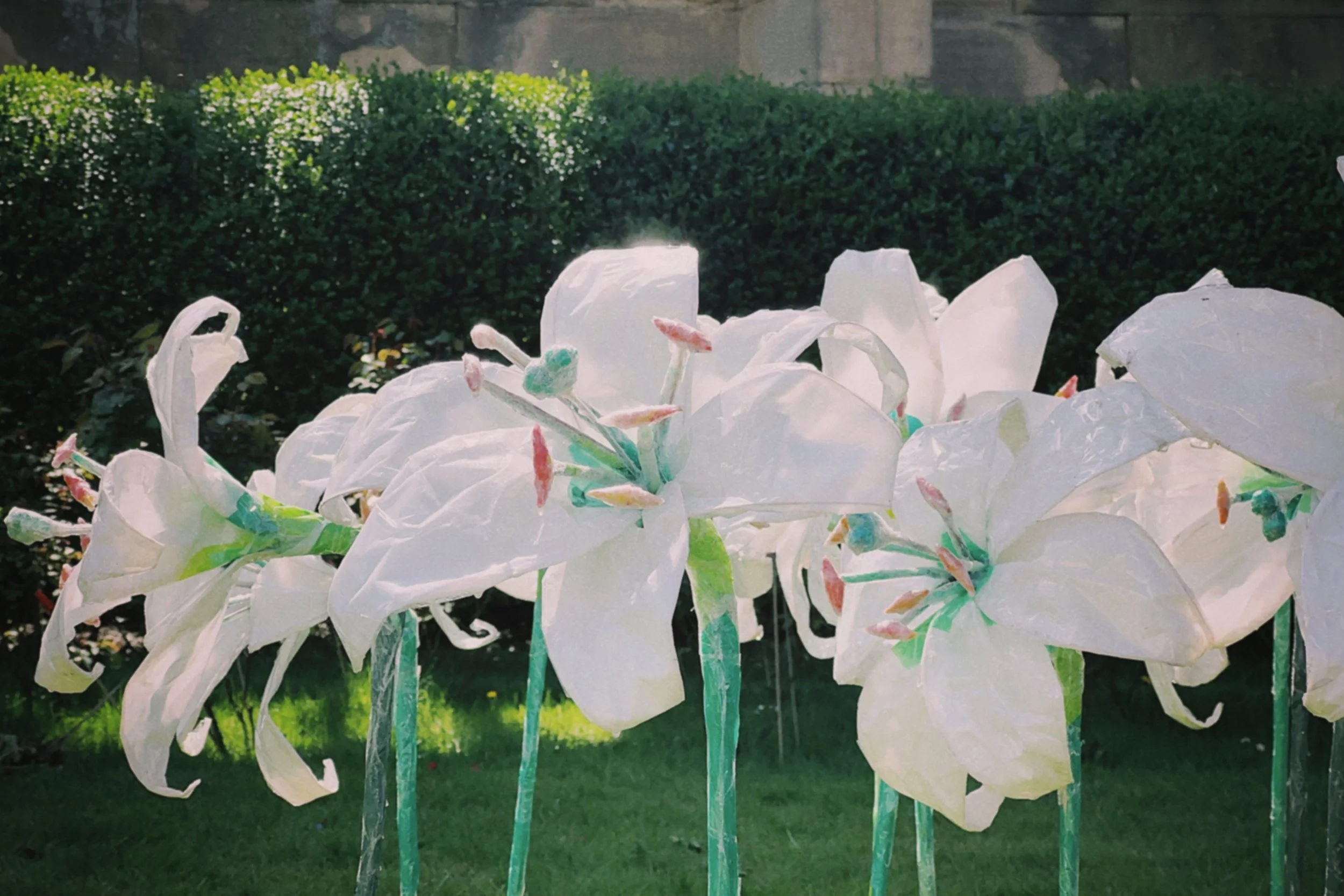 This installation features 50 handcrafted Madonna Lilies – a flower native to the region of Palestine and Israel – made from upcycled plastic carrier bags. The lilies were created during workshops held at Asylum Link, by people from across Liverpool’s communities, including those with lived experience of seeking refuge.