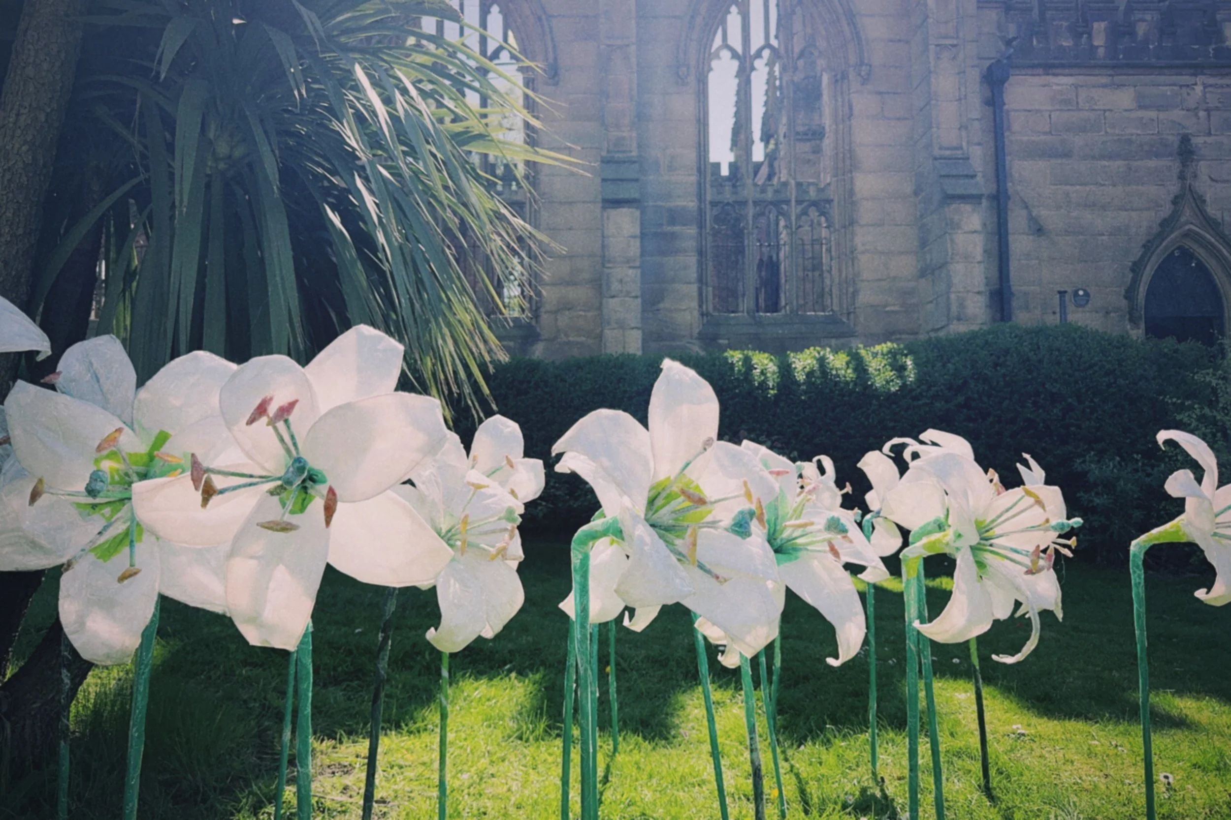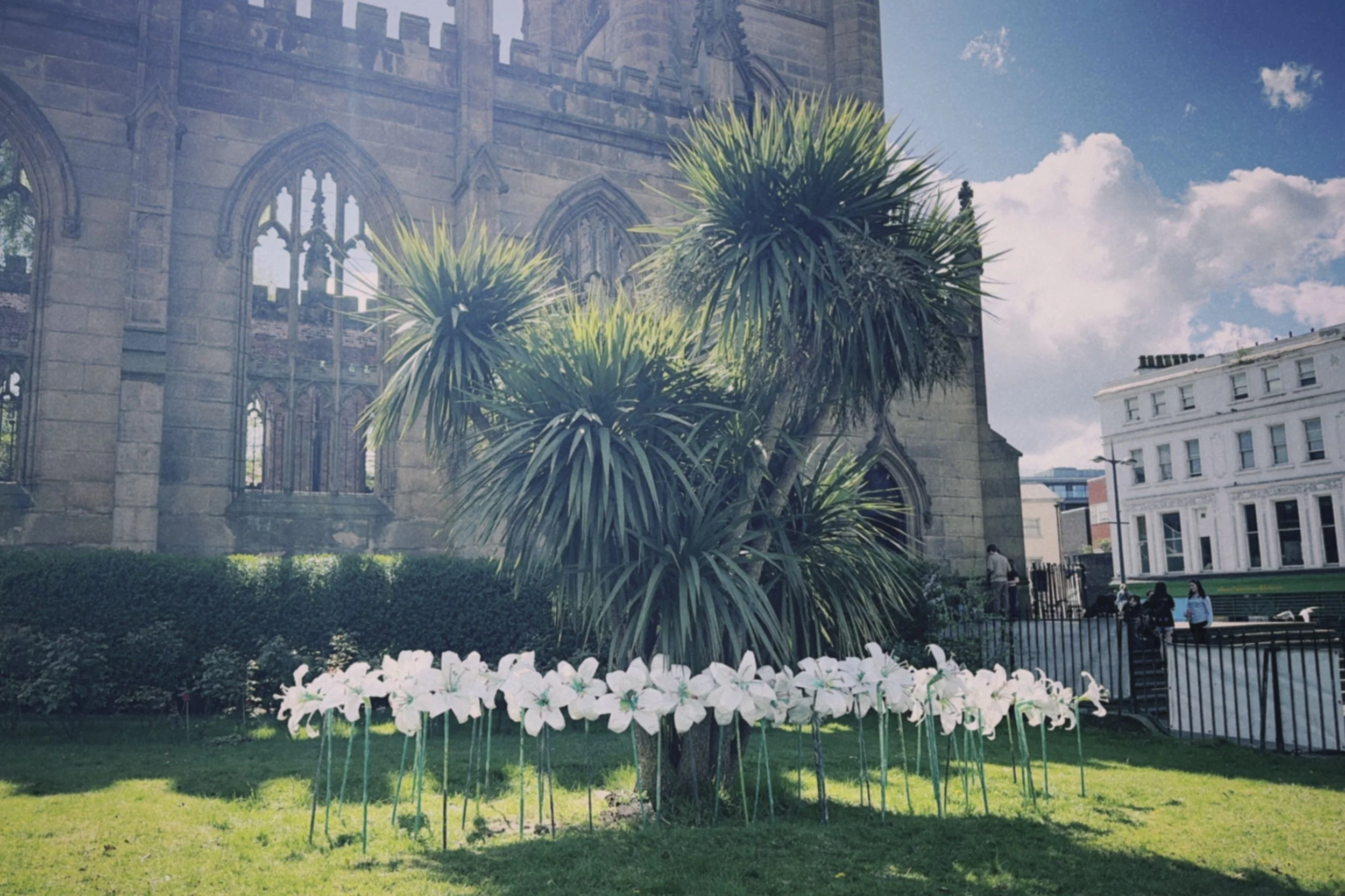 The design and method for making the lilies was developed by Liverpool-based artist Faith Bebbington, who facilitated the workshops and guided the production process to bring the installation together.